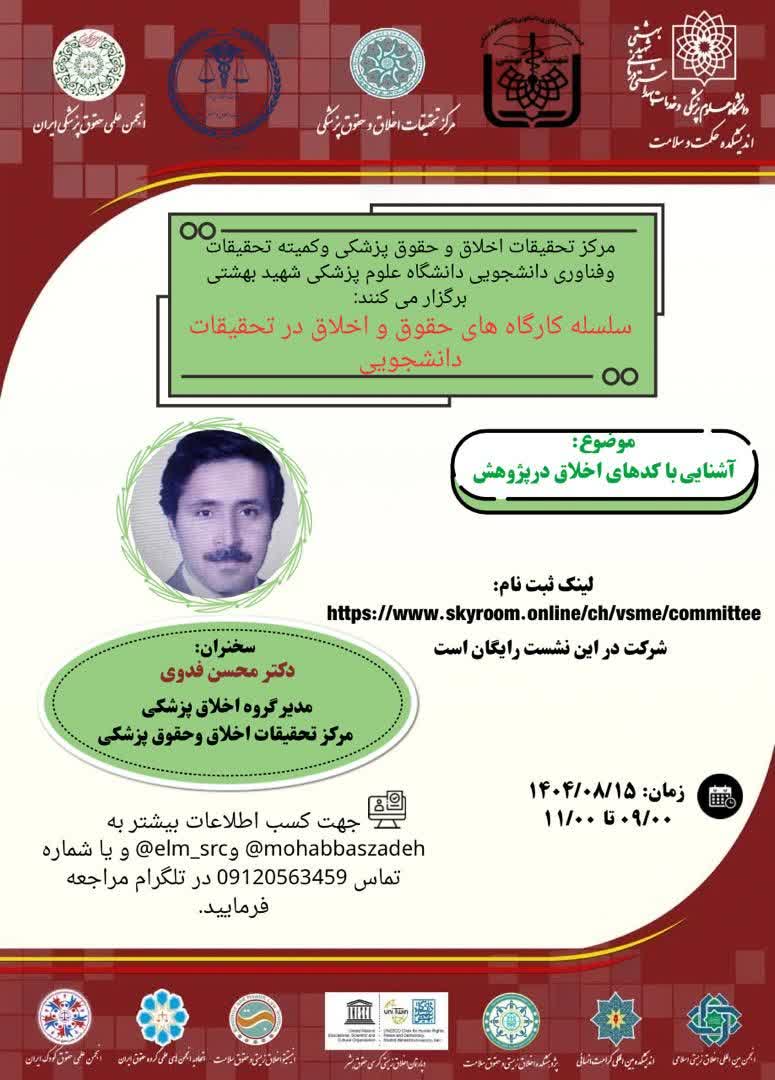 مرکز تحقیقات اخلاق و حقوق پزشکی و کمیته تحقیقات و فناوری دانشجویی دانشگاه علوم پزشکی شهید بهشتی برگزار می کنند: