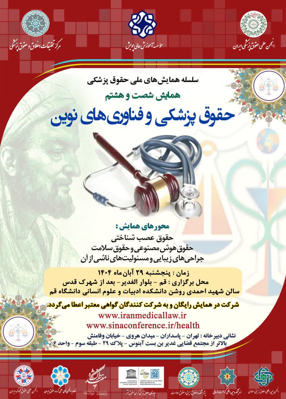 اطلاعیه برگزاری سلسله همایش های ملی حقوق پزشکی؛ همایش شصت و هشتم؛ حقوق پزشکی و فناوری های نوین