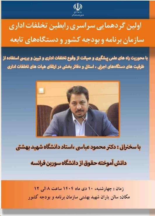 اطلاعیه برگزاری اولین گردهمایی سراسری رابطین تخلفات اداری سازمان برنامه و بودجه کشور و دستگاه های تابعه